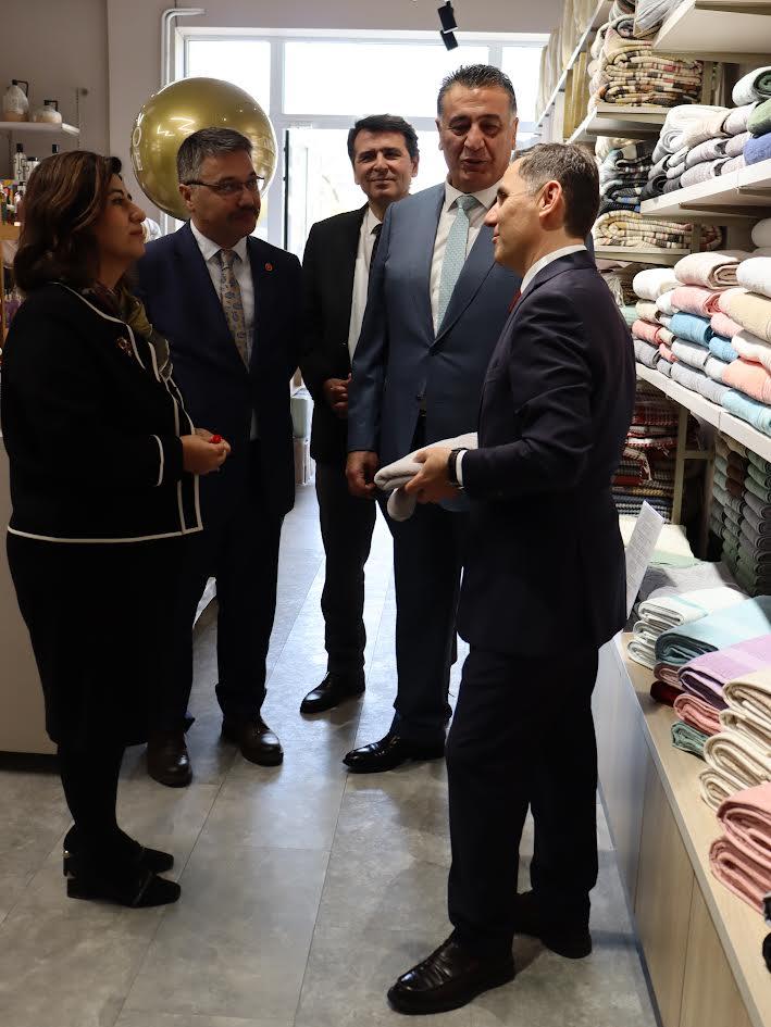 Macoon firması sahibi Metin Oğuz açılışa katılan TÜKİB üyeleri ve iş dünyası temsilcilerine firmasının Kazakistan’daki faaliyetleri ve ürünleri hakkında bilgi verdi.