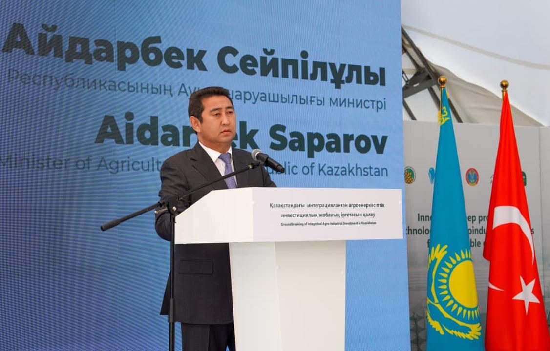 Bakan Saparov, "Cumhurbaşkanımız Ulusa Seslenişinde hem yerli hem de yabancı yatırımcıların katılımıyla tarım ürünlerinin derin işlenmesi gerektiği üzerinde durdu. Bugün, yılda 250 bin ton tahıl ve 80 bin ton bakliyat işleyecek en büyük projelerden birine start veriyoruz. Bunun sayesinde ek ihracat fırsatları yaratılacak, kâr marjı yüksek ürünler üretilecek ve Kazakistan'ın tarımsal ürünlere olan ihtiyacını tamamen öz imkanlarıyla karşılayabilmesi yolunda önemli bir adım olacaktır. Bu tesisin, başarılı bir uluslararası işbirliğinin modeli ve Kazakistan ile Türkiye arasındaki stratejik ortaklığın yeni bir sembolü haline geleceğinden eminim.” diye konuştu.